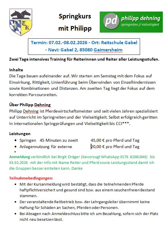 Springkurs Reitschule Gabel (Ingolstadt) 7./8. Febr. 2026